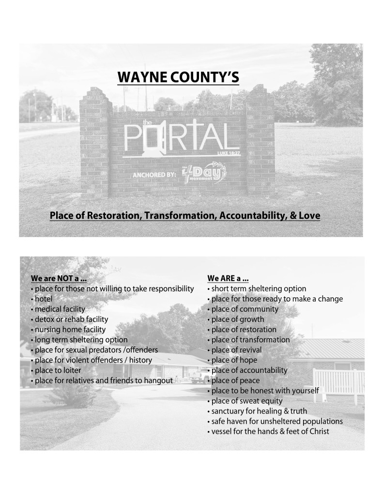 This community project is a divine vision birthed by DJ Coles to help set our homeless and displaced community members on a path towards transformed lives and sustainable housing. The P.O.R.T.A.L. stands for Place of Outreach, Restoration, Transformation, Accountability, and Love! The Mission: To provide temporary supportive housing, hope, and resources to members of our community who ARE SEEKING TO OVERCOME homelessness or displacement. The Purpose: To navigate our displaced community members away from homelessness by providing hope.